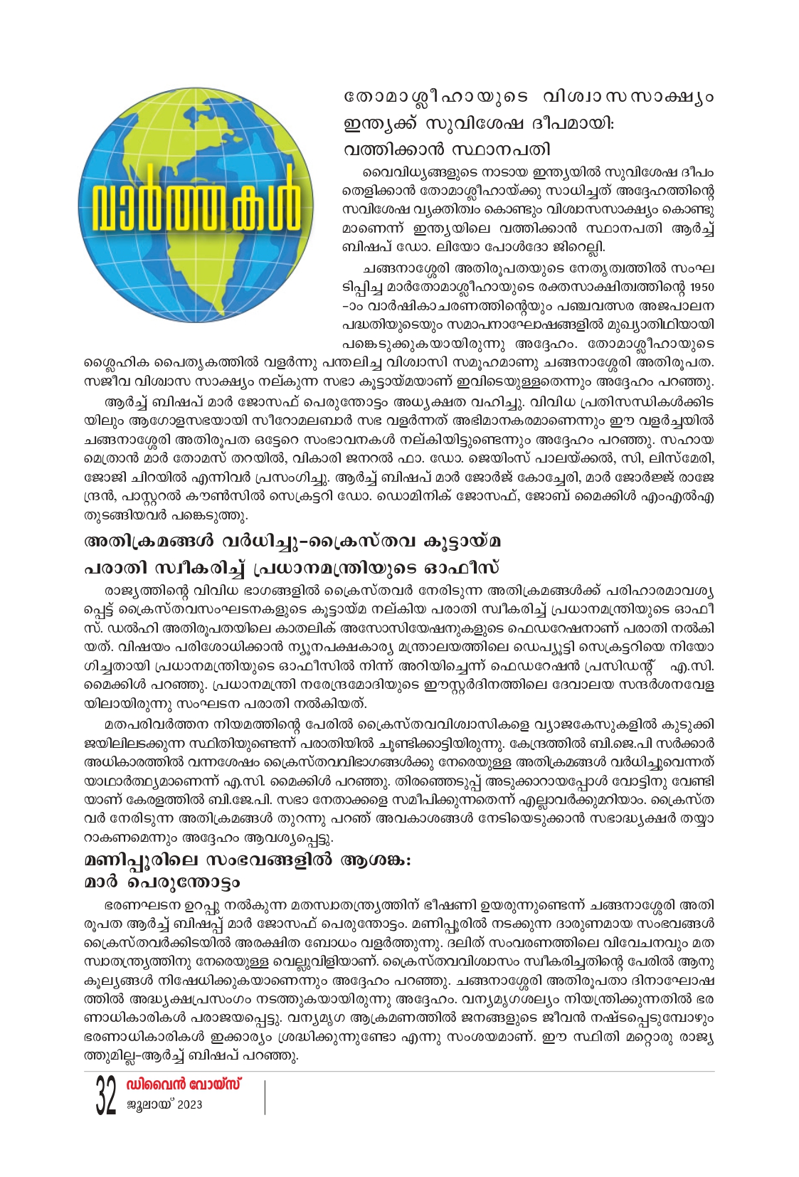 തോമാശ്ലീഹായുടെ വിശ്വാസസാക്ഷ്യം ഇന്ത്യക്ക് സുവിശേഷ ദീപമായി: വത്തിക്കാൻ സ്ഥാനപതി