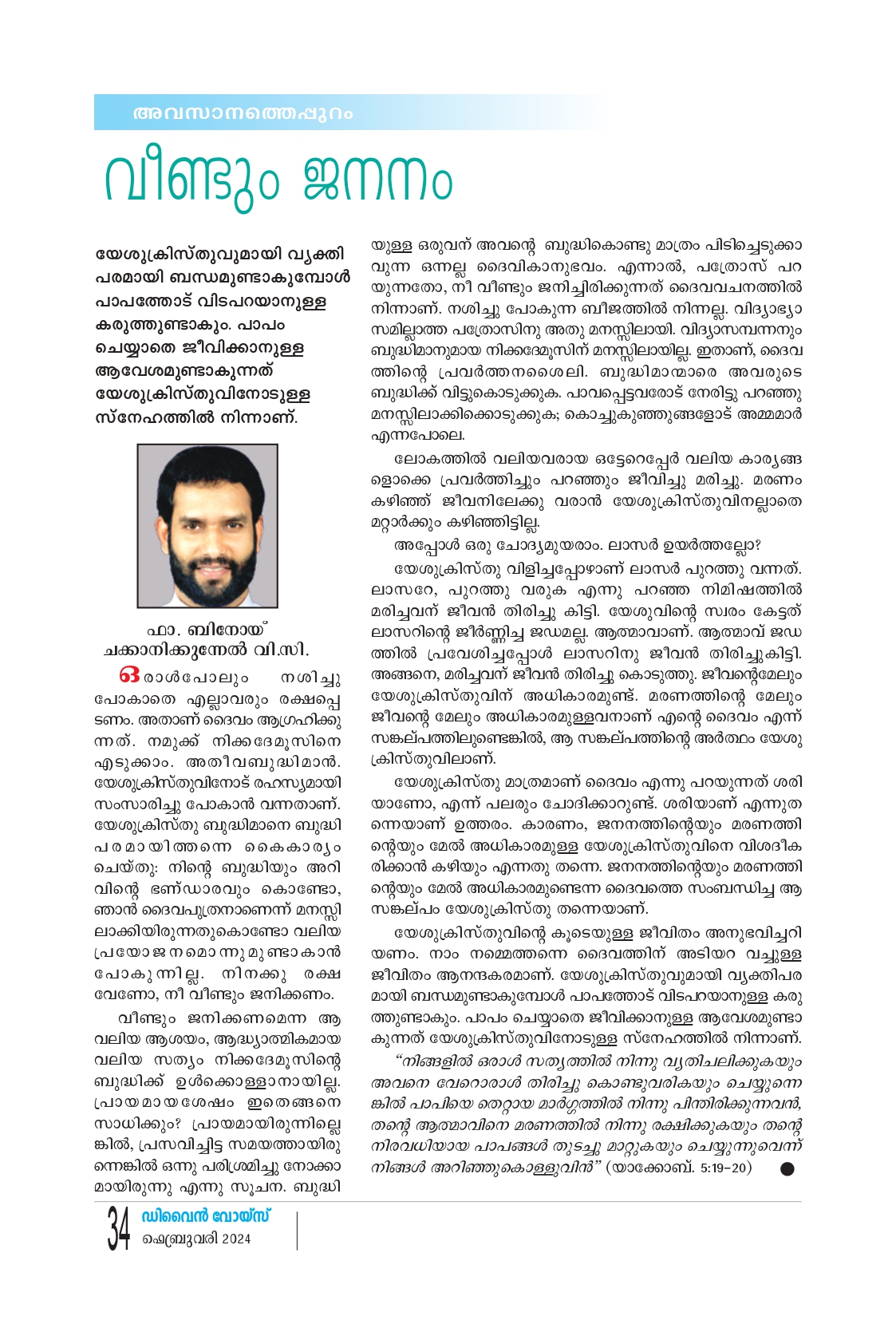ഒരാൾപോലും നശിച്ചു പോകാതെ എല്ലാവരും രക്ഷപ്പെ ടണം. അതാണ് ദൈവം ആഗ്രഹിക്കു ന്നത്. നമുക്ക് നിക്ക ദേ മുസിനെ എടുക്കാം. അതീവബുദ്ധിമാൻ. യേശുക്രിസ്തുവിനോട് രഹസ്യമായി സംസാരിച്ചു പോകാൻ വന്നതാണ്. യേശുക്രിസ്തു ബുദ്ധിമാനെ ബുദ്ധി പരമായിത്തന്നെ കൈകാര്യം ചെയ്തു: നിന്റെ ബുദ്ധിയും അറി വിൻ്റെ ഭണ്ഡാരവും കൊണ്ടോ, ഞാൻ ദൈവപുത്രനാണെന്ന് മനസ്സി ലാക്കിയിരുന്നതുകൊണ്ടോ വലിയ പ്രയോജനമൊന്നുമുണ്ടാകാൻ പോകുന്നില്ല.