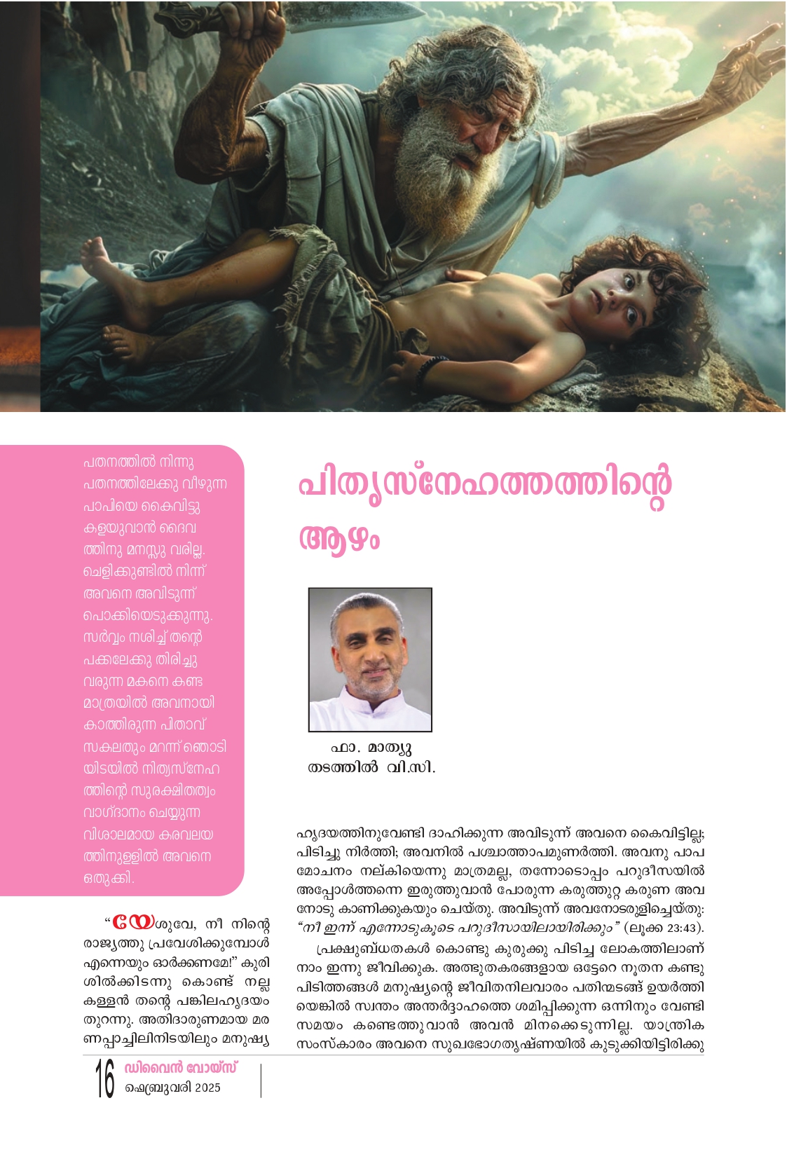 *യേശുവേ, നീ നിൻ്റെ രാജ്യത്തു പ്രവേശിക്കുമ്പോൾ എന്നെയും ഓർക്കണമേ!" കുരി ശിൽക്കിടന്നു കൊണ്ട് നല്ല കള്ളൻ തന്റെ പങ്കിലഹൃദയം തുറന്നു. അതിദാരുണമായ മര ണപ്പാച്ചിലിനിടയിലും മനുഷ്യ ഹൃദയത്തിനുവേണ്ടി ദാഹിക്കുന്ന അവിടുന്ന് അവനെ കൈവിട്ടില്ല; പിടിച്ചു നിർത്തി; അവനിൽ പശ്ചാത്താപമുണർത്തി. അവനു പാപ മോചനം നല്കിയെന്നു മാത്രമല്ല, തന്നോടൊപ്പം പറുദീസയിൽ അപ്പോൾത്തന്നെ ഇരുത്തുവാൻ പോരുന്ന കരുത്തുറ്റ കരുണ അവ നോടു കാണിക്കുകയും ചെയ്തു. അവിടുന്ന് അവനോടരുളിച്ചെയ്തു: “നീ ഇന്ന് എന്നോടുകൂടെ പറുദീസായിലായിരിക്കും" (ലൂക്ക 23:43).