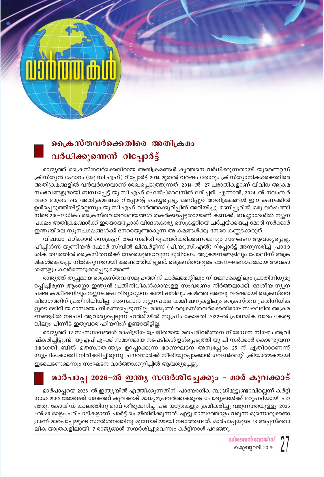 ക്രൈസ്തവർക്കെതിരെ അതിക്രമം വർധിക്കുന്നെന്ന് റിപ്പോർട്ട്